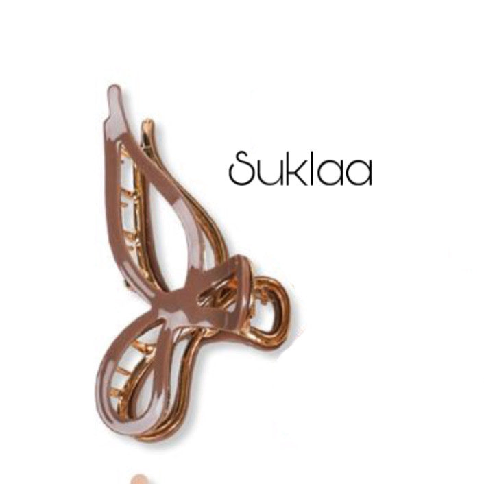 Kaunis hiusklipsi hainhammas rusetti kultaisella pohjalla.