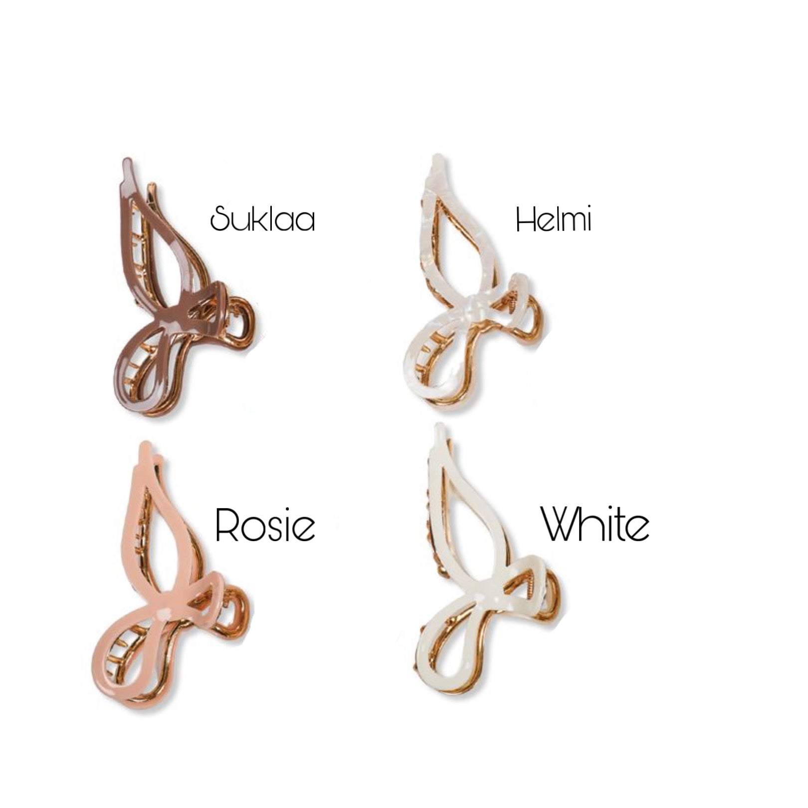 Eri värejä: suklaa, helmi, rosie ja white valkoinen.