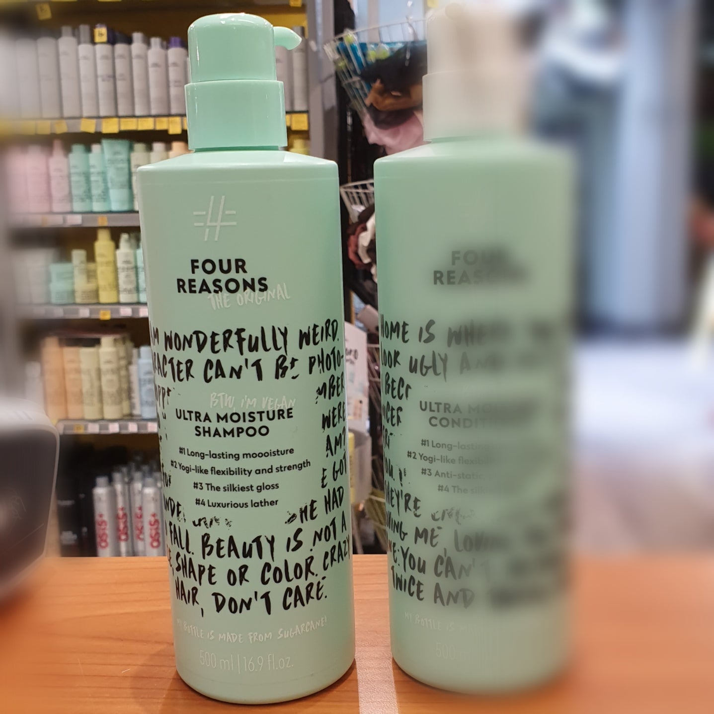 FOUR REASONS Original Ultra Moisture shampoo puolen litran PUMPPUPULLOSSA on juuri sitä mitä lupaa: superkosteuttavia tuotteita superkuiville hiuksille. Superkosteuttava shampoo hoitaa ja vahvistaa kuivia, huonokuntoisia hiuksia tehokkaasti. Betaiini ja glyseroli kosteuttavat hiuksia lisäten kiiltoa, joustavuutta ja elinvoimaa. Sisältää hoitavista ominaisuuksistaan tunnettua herneproteiinia.