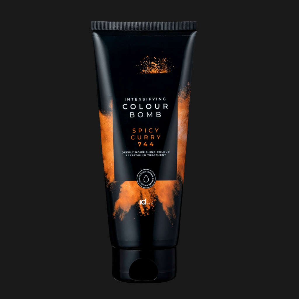 Sävy SPICY CURRY 🧡 IdHAIR Intensifying Colour Bomb on syvältä ravitseva ja tehokkaasti sävyttävä hoitoaine, jonka hoitava koostumus on vegaaninen sekä Curly Girl-metodin mukaisesti hyväksytty.