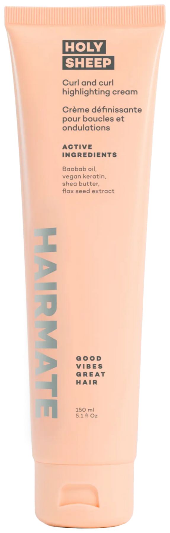 HOLY SHEEP 🐑 auttaa korostamaan kiharoita ja kesyttämään kiharat hiukset. Kosteuttaa ja vähentää pörröisyyttä. Huolella valitut ainesosat silottavat ilman, että hiukset tuntuvat raskailta, vegaaninen proteiini vahvistaa, ja mehiläisvaha suojaa vaurioilta.